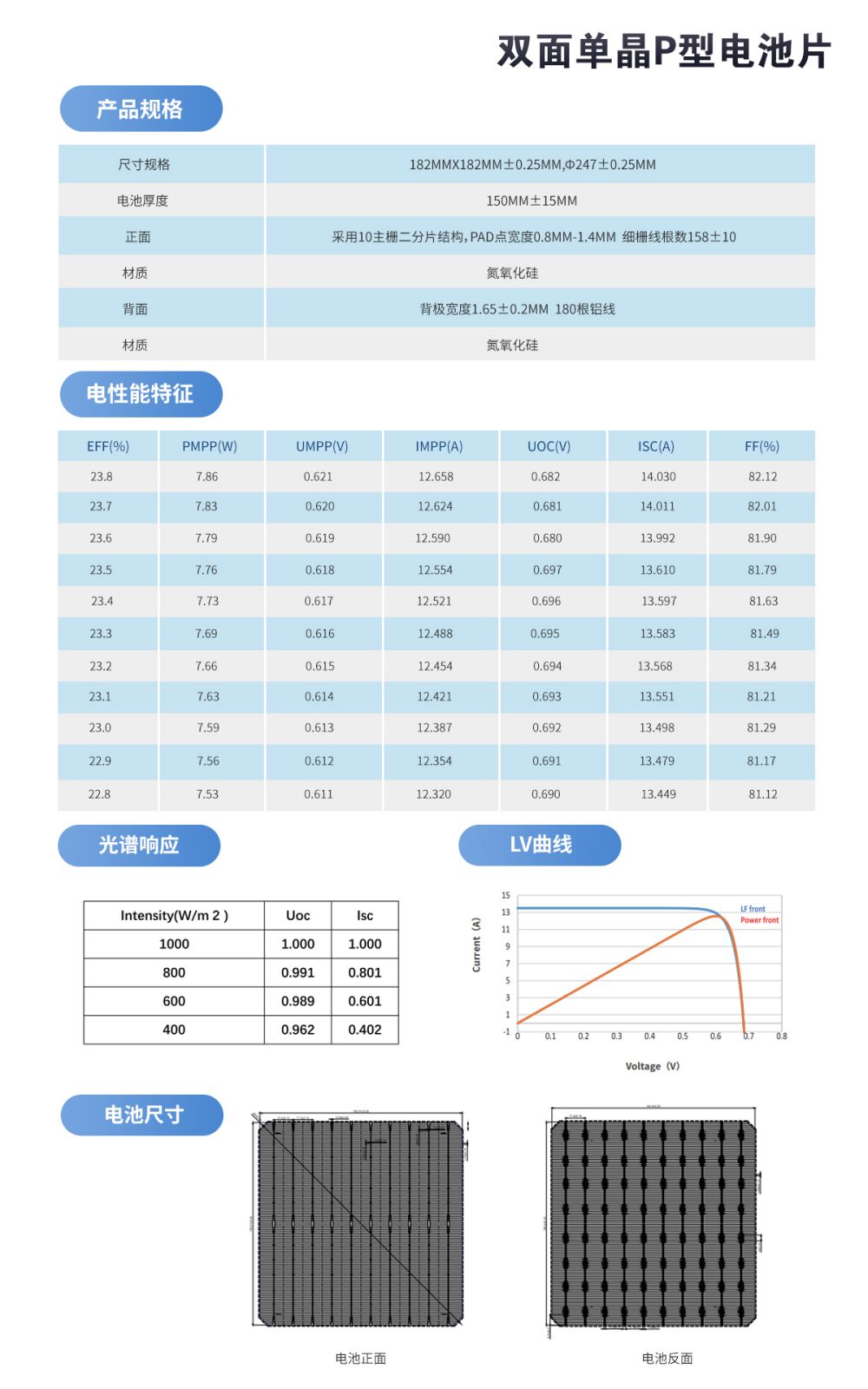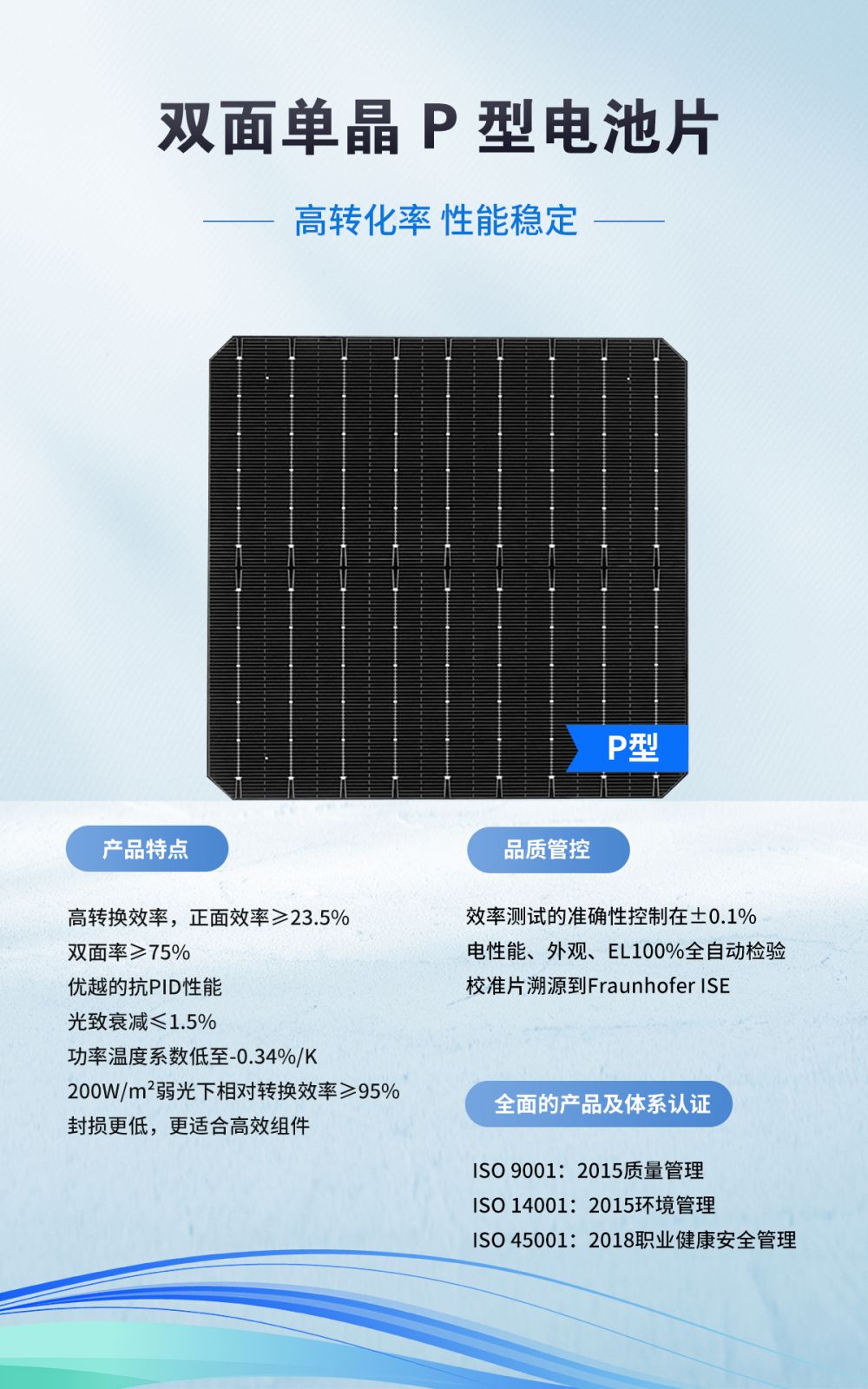 双面单晶 P 型电池片